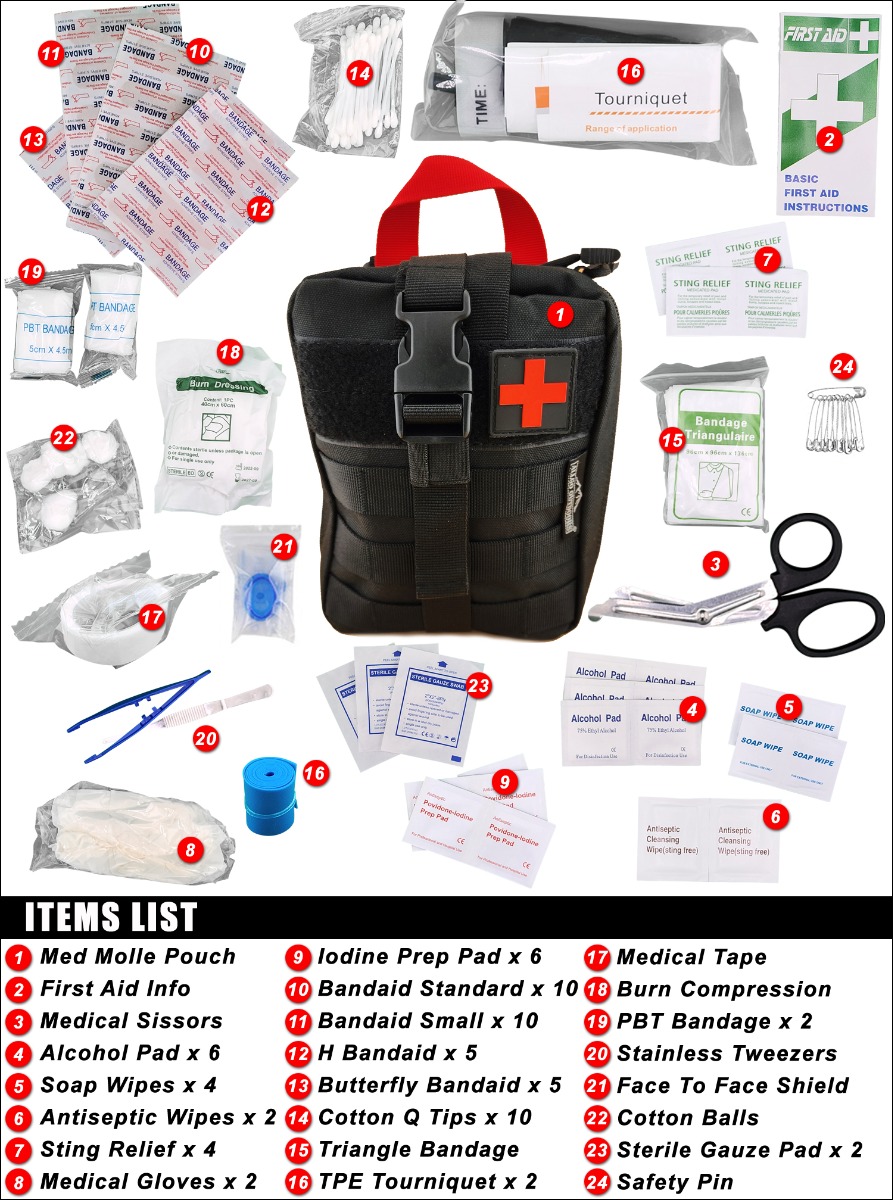 The 86+ piece medical kit comes with everything you need for basic to advance needs. Be prepared and have the peace of mind you’re looking for when it comes to a meditcal kit. Great for camping, hiking or just to have in the car.