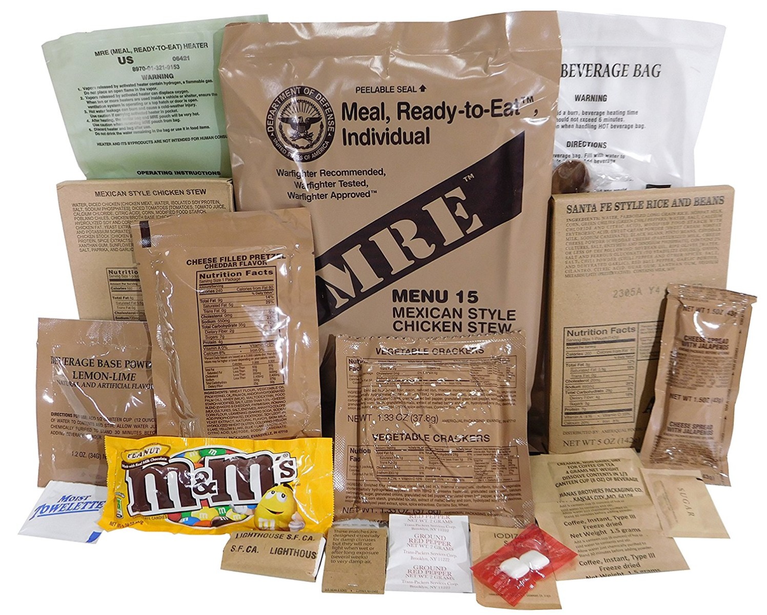 MREs are great for survival, food storage, hiking, earthquake, fire, boating, natural disaster or just food storage for any emergency. Military MREs are great for any reason and have been tested over and over to last. Great tasting and a long shelf life is why a MRE is great to have and to eat. Stock up before the next emergency so you have plenty food storage and can be self-sufficient. On average a typical Authentic US Military MRE provides 1,250 calories with 13% protein, 36% fat, and 51% carbohydrates.